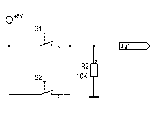 'Wer den Taster lieber nach Minus schalten lassen will (dig1 mit 10K an Plus)
